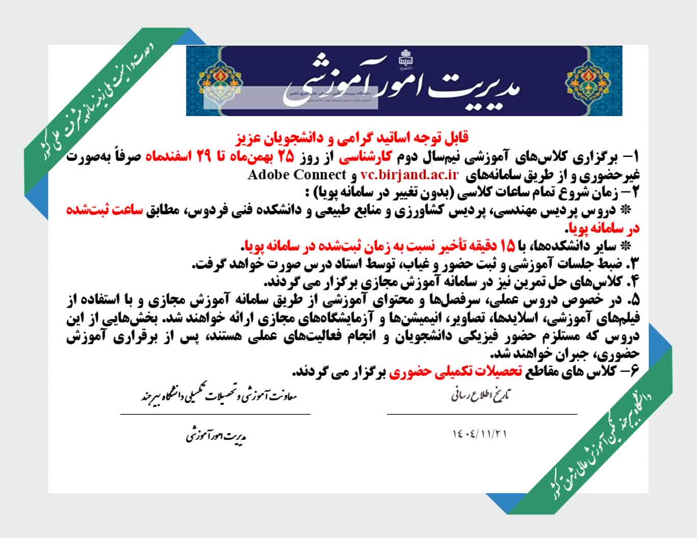 vc.birjand.ac.ir و Adobe Connect برگزار میشود.